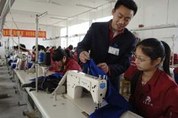 4月16日,安徽省六安市金安區(qū)培訓(xùn)基地的老師在向青年農(nóng)民傳授縫紉技能。記者近日從安徽省農(nóng)業(yè)委員會獲悉,該省從2004年實(shí)施對農(nóng)村農(nóng)村勞動力轉(zhuǎn)移培訓(xùn)的“陽光工程”以來,已累計(jì)培訓(xùn)農(nóng)民104萬人,培訓(xùn)轉(zhuǎn)移率達(dá)90%以上。2008年,該省將進(jìn)一步加強(qiáng)“陽光工程”培訓(xùn),力爭培訓(xùn)30萬農(nóng)民,同時提高受培訓(xùn)農(nóng)民的補(bǔ)助標(biāo)準(zhǔn)。