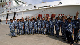 4月21日,首批26名獲救中國漁民離開“南海救111”輪抵達(dá)海南三亞。受今年1號臺風(fēng)“浣熊”影響,約180名中外漁民在西沙遇險。繼4月19日對140余名中外漁民進(jìn)行救助后,4月20日,交通運輸部救助隊伍繼續(xù)全力搜救在臺風(fēng)中失蹤的40名中外漁民。