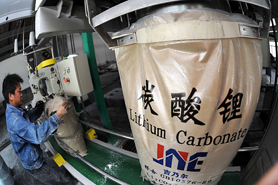 青海鋰業(yè)公司員工在碳酸鋰生產(chǎn)車間作業(yè)(5月15日攝)。 近年來,我國(guó)一些高新科技企業(yè)利用柴達(dá)木盆地豐富的鹽湖資源研發(fā)生產(chǎn)碳酸鋰產(chǎn)品,目前已突破技術(shù)“瓶頸”,并形成規(guī);a(chǎn),為我國(guó)大規(guī)模開發(fā)利用鹽湖資源奠定了技術(shù)基礎(chǔ)。 | |