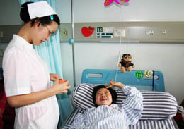 10歲的鄧林玉是四川北川縣曲山小學四年級的學生,在汶川大地震中左坐骨骨折。日前,小玉和其他143名傷員一起被送到南寧,在廣西壯族自治區(qū)人民醫(yī)院接受治療。