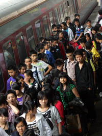 25日,中石化北京分公司從地震重災區(qū)都江堰市招收的95名新員工抵達北京西站。