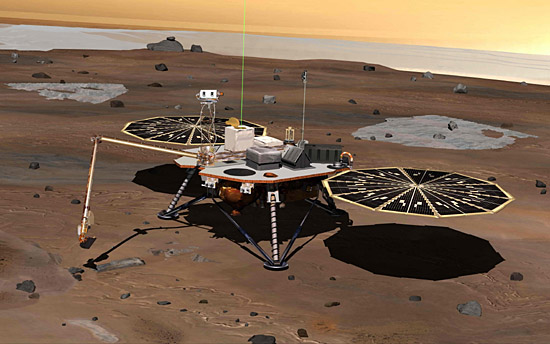 這是美國宇航局提供的“鳳凰”號探測器在火星著陸的效果圖。美國宇航局噴氣推進實驗室25日宣布,美國西部時間25日16時53分(北京時間26日7時53分),美國“鳳凰”號火星著陸探測器成功降落在火星北極附近區(qū)域。新華社發(fā)