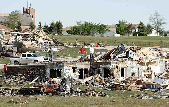 26日,在美國艾奧瓦州的帕克斯堡,幾名志愿者站在被龍卷風(fēng)摧毀的房屋的廢墟中。美國國家氣象局25日說,美國中北部的明尼蘇達(dá)州和艾奧瓦州部分地區(qū)當(dāng)日遭疑似龍卷風(fēng)的強(qiáng)風(fēng)暴襲擊。風(fēng)暴在明尼蘇達(dá)州雨果市造成數(shù)十棟房屋被毀,一名2歲嬰兒遇難,至少20人下落不明。在艾奧瓦州則造成至少7人死亡,另有50多人受傷。新華社/路透
