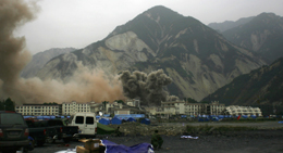 汶川縣映秀鎮(zhèn)開(kāi)始爆破拆除危房