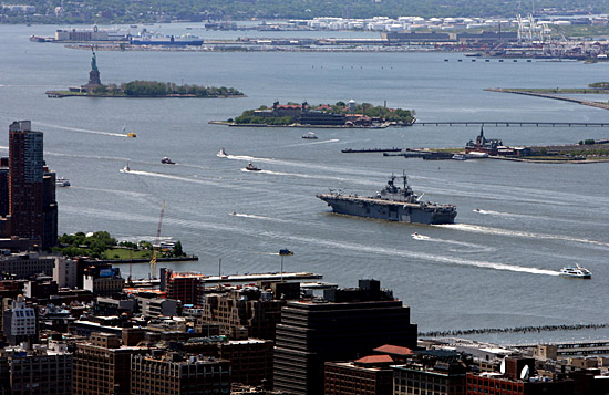 28日,美國海軍兩棲攻擊艦“卡爾薩基”號從紐約哈得孫河口駛離。當(dāng)日,第21屆紐約艦隊周謝幕,艦隊駛離紐約。本屆艦隊周期間,6萬余人登艦參觀。