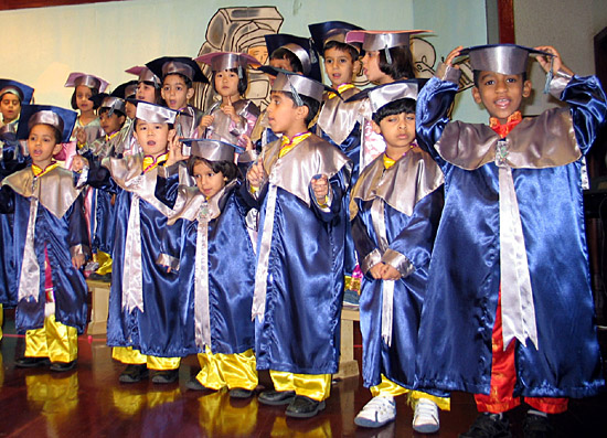 | 5月27日,阿聯(lián)酋阿布扎比兒童教育中心漢語(yǔ)班舉行畢業(yè)典禮。17名阿聯(lián)酋小朋友和2名中國(guó)小朋友穿上畢業(yè)服,戴上畢業(yè)帽,結(jié)束了兩年的漢語(yǔ)學(xué)習(xí)。阿布扎比教育局在王儲(chǔ)穆罕默德·本·扎耶德的倡導(dǎo)下,與中國(guó)國(guó)家漢語(yǔ)國(guó)際推廣領(lǐng)導(dǎo)小組辦公室(國(guó)家漢辦)達(dá)成協(xié)議,于2006年9月正式開辦了阿布扎比兒童教育中心漢語(yǔ)班。 | |
