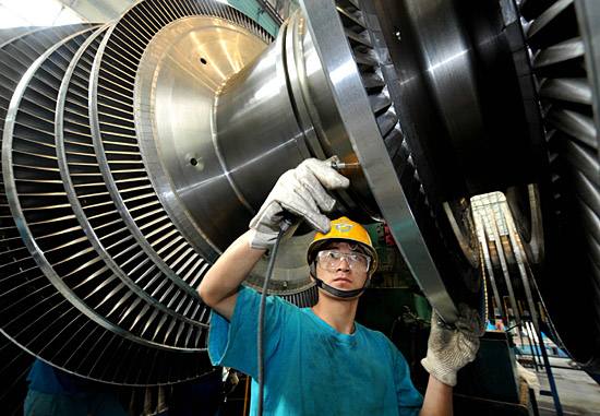 6月9日,四川東江汽輪機廠德陽分廠的工人在生產(chǎn)電力設(shè)備。受地震影響,四川一些工業(yè)企業(yè)的生產(chǎn)設(shè)施、設(shè)備遭受較大損失。目前,各企業(yè)積極開展生產(chǎn)自救,部分企業(yè)已陸續(xù)恢復(fù)生產(chǎn)。