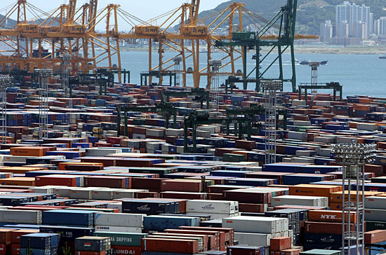 14日,集裝箱被堆放在韓國首都首爾東南450公里處的釜山港。韓國貨車司機(jī)工會(huì)組織13日開始在多個(gè)港口城市發(fā)起集會(huì)和罷工活動(dòng),抗議政府未能為深受油價(jià)上漲影響的司機(jī)解決生計(jì)問題。新華社/法新