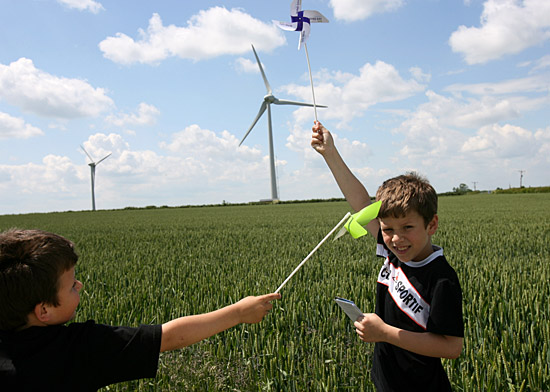 | 14日,在英國(guó)倫敦北部小鎮(zhèn)伯頓,兩名小男孩在一家風(fēng)能農(nóng)場(chǎng)玩耍。自2007年起,每年的6月15日被定為“歐洲風(fēng)能日”,歐洲國(guó)家紛紛舉辦各種活動(dòng),提高人們對(duì)風(fēng)能的認(rèn)識(shí),倡導(dǎo)充分利用清潔能源,保護(hù)環(huán)境,實(shí)行可持續(xù)發(fā)展。 | |