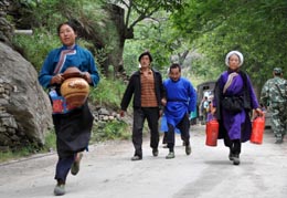 6月18日,汶川縣龍溪鄉(xiāng)受災(zāi)群眾準(zhǔn)備轉(zhuǎn)移。 四川省阿壩州震后共發(fā)生地質(zhì)災(zāi)害2200多起,目前仍有隱患2萬(wàn)多處;處于應(yīng)急狀態(tài)的“生命交通線”隨時(shí)可能被滑坡和塌方阻斷;23萬(wàn)名群眾生命安全受到災(zāi)害威脅,其中11萬(wàn)余人需要緊急避險(xiǎn)。根據(jù)阿壩州的緊急轉(zhuǎn)移避險(xiǎn)時(shí)間表,包括汶川、理縣、茂縣、九寨溝縣等10余個(gè)受災(zāi)縣將在18日基本完成11萬(wàn)余名群眾的緊急避險(xiǎn)任務(wù)。 |