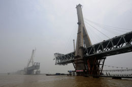 武漢天興洲長江大橋鋼梁架設(shè)穩(wěn)步推進(jìn)