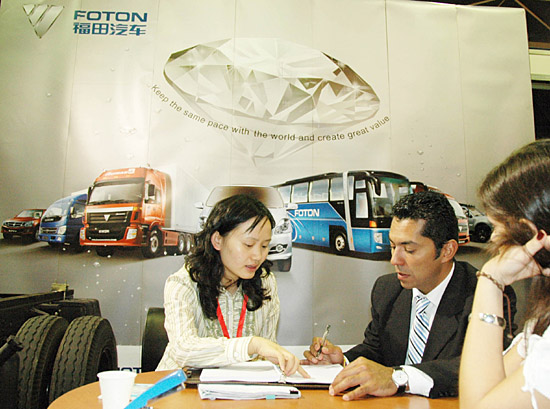 25日,在委內(nèi)瑞拉首都加拉加斯舉行的2008年中國工業(yè)產(chǎn)品(委內(nèi)瑞拉)博覽會上,一位中國參展商(左)在與客戶洽談。當(dāng)日,2008年中國工業(yè)產(chǎn)品(委內(nèi)瑞拉)博覽會在加拉加斯國際展覽中心開幕,來自中國的80多家企業(yè)開設(shè)展臺尋覓商機。