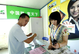 7月5日,在四川都江堰市幸福家園安置點(diǎn),顧客在活動(dòng)板房?jī)?nèi)的網(wǎng)通應(yīng)急營(yíng)業(yè)廳辦理業(yè)務(wù)。搶通修復(fù)因?yàn)?zāi)損毀的供水、道路、電力、通信等基礎(chǔ)設(shè)施,對(duì)抗震救災(zāi)的順利開展至關(guān)重要,也是災(zāi)后重建和恢復(fù)生產(chǎn)的重要前提。記者采訪了解到,目前四川地震災(zāi)區(qū)水、電、路和通信等基礎(chǔ)設(shè)施基本恢復(fù)。