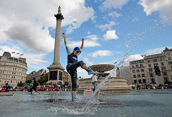 12日,一名藍(lán)衣舞者在英國倫敦的特拉法爾加廣場上起舞。當(dāng)天,2008名分別身穿紅、黃、藍(lán)三色服裝的舞者在廣場上共同舞蹈,成功打破了最多人同時(shí)起舞的吉尼斯世界紀(jì)錄,也成為了2008年“倫敦起舞周”的高潮!皞惗仄鹞柚堋笔且豁(xiàng)大型年度街頭舞蹈活動(dòng),今年的活動(dòng)從7月5日開始,直至7月13日結(jié)束。新華社/法新