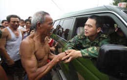 7月20日下午,63歲的木魚鎮(zhèn)受災(zāi)群眾雍汝進(jìn)拉住準(zhǔn)備撤離的抗震勇士的手久久不放。 當(dāng)日,在重災(zāi)區(qū)青川參與抗震救災(zāi)的濟(jì)南軍區(qū)某“猛虎師”官兵撤離歸建。長(zhǎng)長(zhǎng)的群眾送別隊(duì)伍,站滿了道路兩旁;短短的一公里,撤離的車隊(duì)走走停停用了三個(gè)小時(shí)。 鄉(xiāng)親們舍不得戰(zhàn)士們走,送別的群眾中有的是戰(zhàn)士們用雙手在廢墟中挖出來的,有的是受傷經(jīng)部隊(duì)醫(yī)療隊(duì)治療痊愈的。這支部隊(duì)在抗震一線搶救傷員、轉(zhuǎn)移群眾、清理廢墟、搭建簡(jiǎn)易房,在受災(zāi)群眾眼中,他們已經(jīng)成為這塊土地不可缺少的一部分。 |