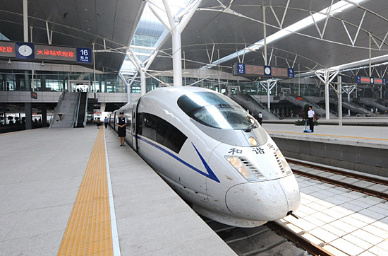 7月22日,試運行的CRH3型動車組列車?吭谔旖蛐驴驼菊九_。為確保京津城際軌道交通和天津新客站8月1日通車運營,天津新客站售票、進出檢票、安檢等系統(tǒng)7月22日進入模擬運營狀態(tài)。同時,京津城際列車已進入試運行的最后階段。即將正式運營的京津城際鐵路連接北京、天津兩個直轄市,全長120公里。