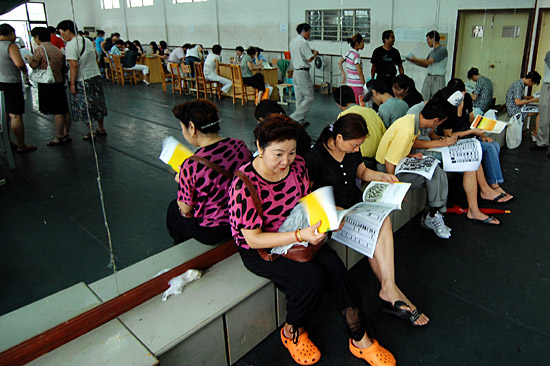 7月31日,在經(jīng)濟適用房簽約大廳,許多購房者在安靜等待。日前,杭州市開始進行2008年度首次經(jīng)濟適用房公開選房,引起了許多購房市民的強烈關注。據(jù)悉,本次經(jīng)濟適用房選房共推出房源4463套,總住宅建筑面積約為38萬平方米。