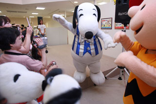 11日,在日本東京銀座三越百貨店,“史努比”為觀眾表演舞蹈。一年一度的“史努比在銀座”特展近日如期在這里開幕,“史努比”和它的好伙伴們輪番登臺表演,吸引了眾多“粉絲”。