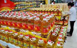 8月14日,銀川市某商場的工作人員在擺放食用油。據(jù)新華社全國農(nóng)副產(chǎn)品和農(nóng)資價(jià)格行情系統(tǒng)監(jiān)測,7月以來,食用油價(jià)格整體回落。
