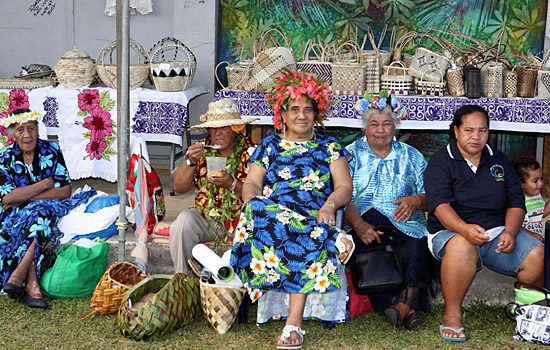 20日,在紐埃首都阿洛菲,當(dāng)?shù)貗D女在氣候變化和農(nóng)貿(mào)展示會(huì)上展售手工編織品。當(dāng)天,為配合第39屆太平洋島國(guó)論壇領(lǐng)導(dǎo)人會(huì)議,當(dāng)?shù)嘏e行了氣候變化和農(nóng)貿(mào)展示會(huì)。