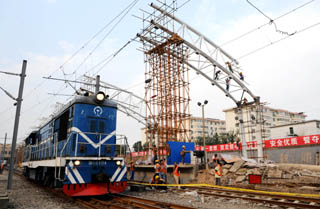 8月27日,在太原火車站,一列機車從正在施工的站臺旁駛過。投資1.5億元的太原火車站改造工程目前正在緊張進行,這也是太原火車站建站以來最大規(guī)模的升級改造,改造區(qū)域包括站臺區(qū)、站內(nèi)設(shè)施和軌道群。工程從今年6月中旬開始,預計到年底結(jié)束,改造后太原火車站的旅客容納量將增加近一倍。