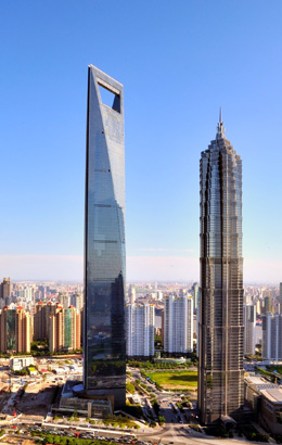 8月28日拍攝的環(huán)球金融中心和金茂大廈。高達492米的上海環(huán)球金融中心正式宣布落成啟用,從而超越421米的金茂大廈成為我國內(nèi)地目前最高的在用建筑。