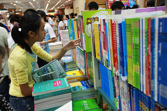 8月31日,一位初中生正在書店內(nèi)選購英語輔導(dǎo)書。