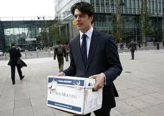 9月15日,一名雷曼公司員工拿著打包的私人物品離開英國首都倫敦的雷曼兄弟投資銀行辦公室。由于陷于嚴重的財務(wù)危機,美國第四大投資銀行雷曼兄弟公司當日宣布將申請破產(chǎn)保護。