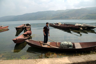 9月20日,陽宗海周邊的漁民收拾捕魚工具。作為云南九大湖泊之一的陽宗海,近期出現(xiàn)了砷濃度超標(biāo)的污染現(xiàn)象,云南省政府立即在陽宗海全面實(shí)施“三禁”,即禁止飲用陽宗海的水,禁止用陽宗海的水游泳和洗浴,禁止捕撈陽宗海的水產(chǎn)品。