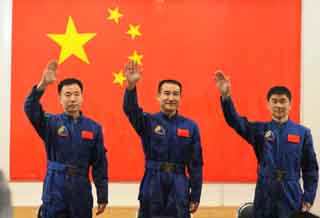 當(dāng)日,神舟七號載人航天飛行任務(wù)總指揮部決定,神舟七號飛船將于9月25日21時(shí)07分至22時(shí)27分擇機(jī)發(fā)射,進(jìn)行載人航天飛行。執(zhí)行神七飛行任務(wù)的航天員是翟志剛(中)、劉伯明(右)、景海鵬。