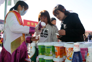 當(dāng)日,內(nèi)蒙古伊利、蒙牛集團在呼和浩特市街頭舉辦安全乳制品贈飲品嘗活動,旨在逐步樹立消費者信心。