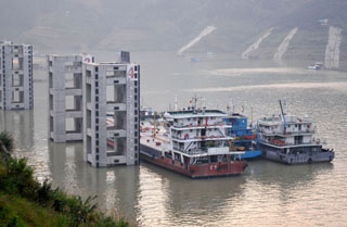 幾艘船只?吭谌龒{大壩上游。