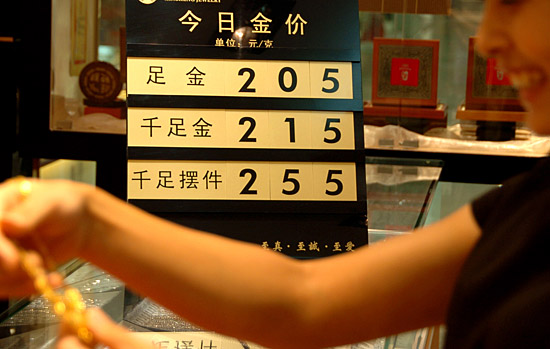 近日,受國際黃金期貨價格下跌的影響,海口市黃金飾品價格出現(xiàn)大幅下降。?诘那ё憬瘘S金飾品價格已經(jīng)跌至今年最低點(diǎn)——215元/克,比最高時298元/克下降了27.9%。