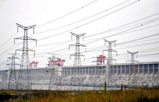 10月29日9時(shí),三峽工程右岸的最后一臺(tái)發(fā)電機(jī)組試運(yùn)行結(jié)束。在進(jìn)行常規(guī)檢查后,30日下午將正式并網(wǎng)發(fā)電。屆時(shí),三峽工程原設(shè)計(jì)安裝的26臺(tái)機(jī)組全部建成投入運(yùn)營。圖為10月28日拍攝的三峽電力輸出線路。