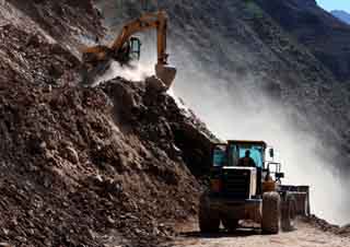 11月2日,作業(yè)車輛在國道214線上清理塌方。
