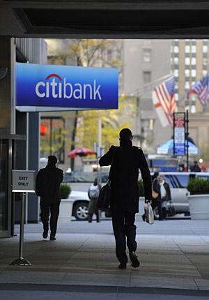 17日,人們從美國紐約的花旗集團(tuán)總部大樓前經(jīng)過;ㄆ旒瘓F(tuán)當(dāng)日宣布計劃再裁員5.2萬人,約占其員工總數(shù)的14%。新華社/法新