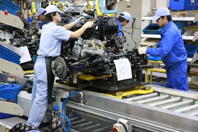 11月19日,技術(shù)工人在上海汽車集團(tuán)臨港新城廠區(qū)裝配流水線上作業(yè)。目前上海市正在向國(guó)家級(jí)自主創(chuàng)新型裝備制造業(yè)基地的目標(biāo)推進(jìn)。民用航空配套、乘用車整車、船舶關(guān)鍵件、海洋工程設(shè)備等五大裝備產(chǎn)業(yè)發(fā)展格局已基本形成。 |