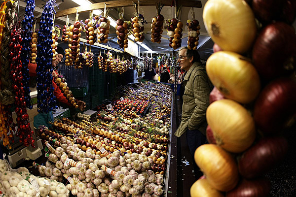 24日,在瑞士伯爾尼的洋蔥集市上,一個(gè)攤主銷售自己的貨物。每年11月的第四個(gè)星期一,伯爾尼都舉辦為期一天的洋蔥集市。在今年的集市上,農(nóng)民們一天銷售出50噸左右的洋蔥和大蒜。新華社/路透