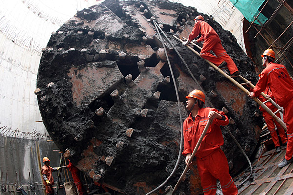 11月25日,隧道工人正在清理盾構(gòu)。 當(dāng)天,由上海隧道股份自行研發(fā)制造的國產(chǎn)盾構(gòu)順利進(jìn)入接收井,上海世博電力電纜隧道工程的首個盾構(gòu)區(qū)間勝利貫通。2010年上海世博會舉辦時間正好跨越了整個夏季,對于主辦地上海而言,夏季正是一年之中用電負(fù)荷最高的時期。為保障電力供應(yīng),多個與世博會息息相關(guān)的用電工程現(xiàn)正在建設(shè)中。上海世博電力電纜隧道全長15.3公里,同時采用盾構(gòu)法、頂管法和明挖法分段施工。 | |