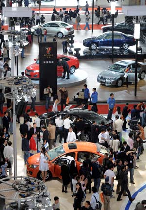 在預(yù)期燃油稅費改革將進行時,更多經(jīng)濟環(huán)保小排量車型成為市場新寵。圖為前不久在“2008南京國際汽車展覽會”上,10多個此類品牌車受到消費者青睞。新華社記者:孫參
