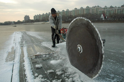 當(dāng)天是農(nóng)歷“大雪”節(jié)氣,黑龍江省牡丹江市一些采冰團(tuán)隊開始采冰。據(jù)工人介紹,受暖冬影響,今年牡丹江市的采冰工作推遲,距大面積采冰還有一段時日。