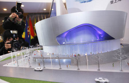 1月19日,兩名記者正在上汽通用企業(yè)館的展示模型前拍照。 當(dāng)日,作為中國2010年上海世博會的全球合作伙伴,通用汽車和上海汽車工業(yè)(集團(tuán))總公司在滬公布了參展上海世博會的企業(yè)館外觀設(shè)計(jì)方案,這是上海世博會16家企業(yè)館中唯一的汽車主題館。 上汽通用企業(yè)館將以“可持續(xù)發(fā)展的動(dòng)力移動(dòng)系統(tǒng)”為主題,重點(diǎn)展示2030年左右的汽車科技和理念。