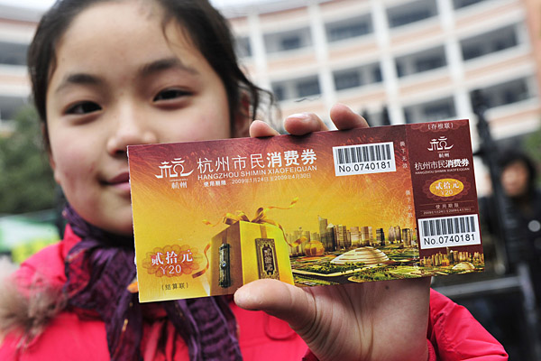 近日,杭州市開始向低保和困難家庭、企業(yè)退休人員、中小學(xué)生等50萬居民發(fā)放總額為1億元的消費(fèi)券,發(fā)放金額為中小學(xué)生每人100元,其余每人(戶)200元。
