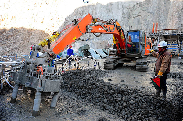 2月3日,水電四局一分局職工在拉西瓦水電站工地施工。