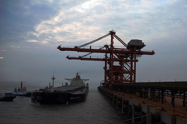 一艘輪船?吭诓苠25噸級(jí)礦石碼頭(2月3日攝)。記者從唐山市曹妃甸管委會(huì)獲悉,2009年1月份,唐山港曹妃甸港區(qū)吞吐量達(dá)到4006271噸,創(chuàng)下自開(kāi)航以來(lái)單月吞吐量最高記錄。