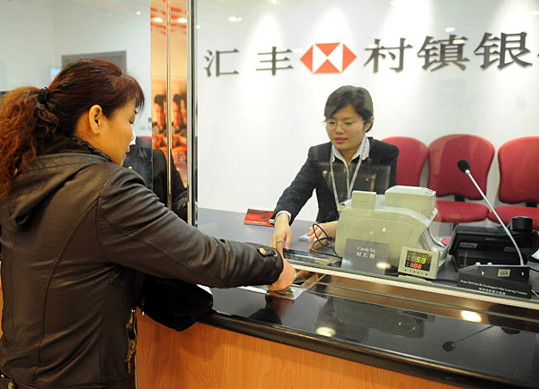 2月12日,密云匯豐村鎮(zhèn)銀行員工為當?shù)乜蛻籼峁┓⻊铡.斎,北京密云匯豐村鎮(zhèn)銀行正式開業(yè),這是匯豐在內地的第四家村鎮(zhèn)銀行。匯豐是首家進入中國農(nóng)村市場的國際性銀行,目前匯豐村鎮(zhèn)銀行已經(jīng)覆蓋了中國的西部、中部、華東和華北地區(qū)。