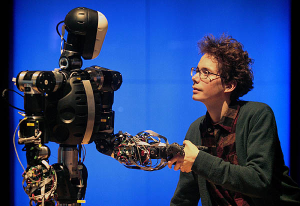 2月17日,在英國(guó)倫敦的科學(xué)博物館,一名工作人員與一個(gè)名為BERTI的機(jī)器人握手。設(shè)計(jì)這個(gè)機(jī)器人的初衷是幫助科學(xué)家研究未來(lái)人與機(jī)器人如何互相影響。新華社/法新
