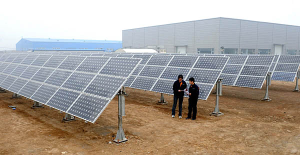3月5日,保定市科諾偉業(yè)公司工作人員在單軸跟蹤式太陽能發(fā)電系統(tǒng)前工作。日前,由保定市科諾偉業(yè)公司研發(fā)的雙軸、單軸跟蹤式太陽能光伏發(fā)電站問世。這種發(fā)電站的太陽能電池板就像向日葵一樣,通過實時跟蹤太陽運動,增強了太陽輻射接收量,可使發(fā)電量提高20%至40%。