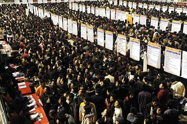 2月21日至22日,由江西省企業(yè)聯(lián)合會(huì)、江西省企業(yè)家協(xié)會(huì)等主辦的“江西省2009年春季大型人才交流會(huì)暨華東高校人才網(wǎng)現(xiàn)場(chǎng)招聘會(huì)”,在南昌國(guó)際展覽中心舉行。包括沃爾瑪、百事可樂(lè)等200余家省內(nèi)外大型企業(yè)現(xiàn)場(chǎng)招聘英才。據(jù)主辦方預(yù)計(jì),屆時(shí)求職者人數(shù)將超過(guò)2萬(wàn)人。 主辦方的愿望雖好,但記者看到招聘會(huì)是空前遇“冷”,現(xiàn)場(chǎng)非常冷清,前來(lái)的求職者寥寥無(wú)幾。由于參與招聘的企業(yè)單位倉(cāng)促上陣,準(zhǔn)備不足,近半用人單位攤位空空無(wú)人。不少買(mǎi)了門(mén)票進(jìn)館前來(lái)應(yīng)聘的大中院校學(xué)生怨聲載道。 然而,同在南昌市,同樣是下雨天,僅相差一周的2月28日,由南昌市委組織部等部門(mén)在江西省體育館舉辦的一場(chǎng)大型招聘會(huì)是決然不同,由于主辦方做了精心的準(zhǔn)備,有近200家企業(yè)入場(chǎng)招賢納才,并求職者一律免費(fèi)入場(chǎng)。 2月28日,招聘會(huì)現(xiàn)場(chǎng)擠滿(mǎn)眾多的求職者。 | |