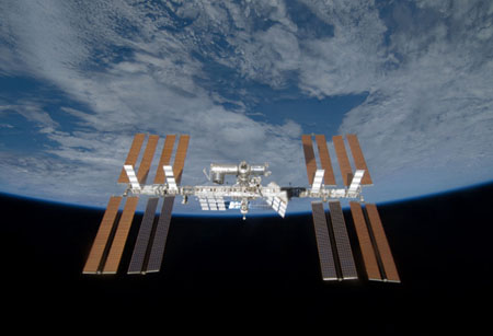 25日,“發(fā)現(xiàn)”號航天飛機(jī)與國際空間站分離,并拍攝下一組國際空間站的照片。